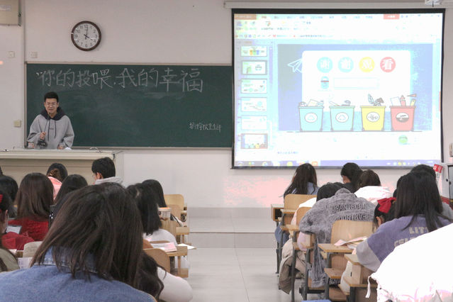 为增强同学们的环保意识,促进“低碳环保”理念在学校的推广和运用,增强同学们的创新能力和动手能力, 1113日下午,bat365中文官方网站于潍坊医学院浮烟山校区B302教室举办“你的投喂,我的幸福”创意垃圾桶活动,bat365中文官方网站学生积极参加。