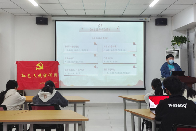 活动中,红色天使宣讲团宣讲人带领同学们重温了中国共产党的成立和发展历程,突出宣讲了万里长征、井冈山精神,以及董存瑞、王二小等英雄的故事,带领同学们感受到了中国共产党不畏艰难、艰苦奋斗的精神,激发了同学们对党的崇敬与热爱。随后,宣讲人向同学们讲述了红医精神以及其代表人物辛育龄,带领同学们感受了“救死扶伤平生愿,人身价值是奉献”的医者情怀,增强了同学们的职业认同感与使命感。活动最后,宣讲人带领同学们学习了中国共产党第二十次全国代表大会的精神,使同学们更加深刻地领悟了新时代中国特色社会主义思想。
