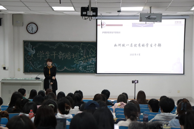 于颖荣以“如何做一名优秀的学生干部”为切入点,具体分析了优秀学生干部的标准、干部各方面素质及干部应具备的能力,要求学生干部应做到“内化于心,外化于行”,以身作则,正确引领同学们做好学院学风建设。随后,于颖荣从学院学生工作中所存在的现实问题出发,要求学生干部结合岗位思考自身定位,准确把握学生干部角色,明确工作目的、规范工作方式,最后,希望学生干部在工作中要加强学习,将今日所学化为实践,更好地完成学院及班级建设,在未来的发展中拥有更广阔的平台。