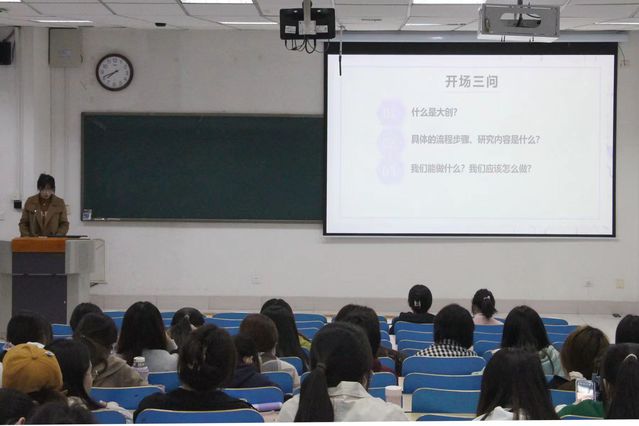 交流会上,辅导员从“大创”是什么,参赛前准备,“大创”的参加流程等五方面为大家详细介绍了“大创”的具体内容及参赛的相关注意事项,并结合实际为同学们说明科研素养以及创新创业能力对个人成长和发展的重要性。随后,2022年优秀项目负责人代表结合自己负责的课题项目,分别就如何进行课题选择、需要做的准备工作、可能面临的问题及解决方法等方面进行经验分享,为同学们答疑解惑。