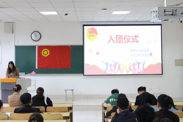 入团仪式包含奏唱国歌,宣读新团员名单,颁发团员证和团徽,宣读团员义务和责任,新、老团员代表发言,全体团员宣誓,齐唱团歌七个环节。仪式中,老团员发言道:“团徽应该成为我们以后生活和工作的标本。”姜迪表示,希望团员们可以通过此次活动,接续维护和坚守这份初心,自觉以强烈的社会责任感和历史使命感来磨练和打造自己,争做有理想抱负的新时代好青年。活动最后,全体团员起立宣誓,仪式在嘹亮的团歌声中结束。