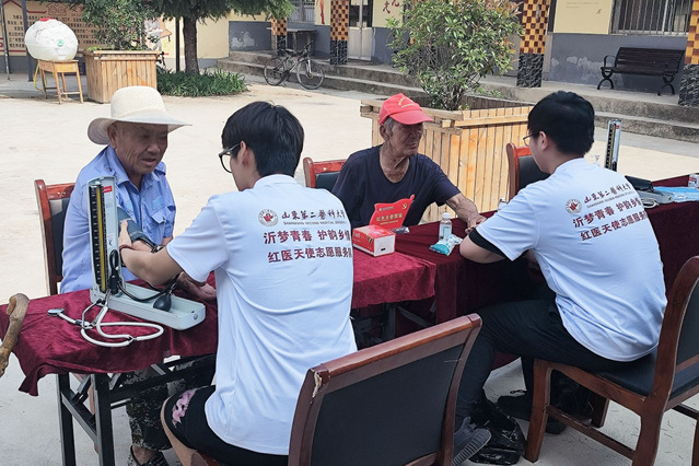 为增进民众健康观念,提升健康意识,弘扬“奉献、友爱、互助、进步”的志愿服务精神,7月17日,bat365中文官方网站“沂梦青春,护韵乡情”红医天使志愿服务队于山东省临沂市蒙阴县烟庄村开展暑期三下乡社会实践的义诊和健康宣讲活动。