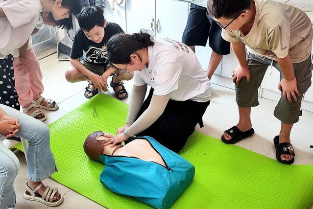 在义诊过程中,志愿者们遵循早预防、早发现、早治疗的原则,耐心询问当地村民的身体状况,提供测血糖、量血压等义诊服务,并针对村民的健康状况给出相应建议,广泛普及医疗卫生知识,引导村民树立健康、预防和治病的意识,引导村民养成良好的生活习惯。与此同时,志愿者们充分发挥专业优势,围绕急救知识进行了健康科普,普及急救知识。通过急救知识的宣讲和实际操作演练相结合的方式,推进应急救护全民化。活动结束后,当地村民对志愿者们的服务表达了感谢以及高度认可。