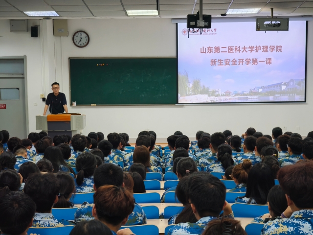 开学第一课。党总支书记马健平为新生带来一场全面的安全教育课,他强调了意识形态安全的重要性,并细致讲解了交通安全、消防安全、用电安全、防溺水、防危化品、防电信诈骗等安全知识,强化学生安全意识和自身责任感,携手打造安全和谐的校园环境。