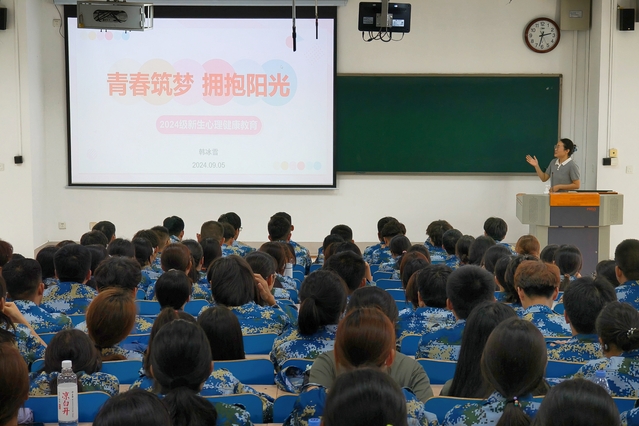 心理健康教育宣讲会。学院辅导员、心理学博士韩冰雪结合理论及案例,深入讲解心理健康知识,细致分析大学新生可能遇到的心理挑战,并提供了有效的应对策略。通过与学生的互动交流,她鼓励同学们分享个人经验,助力新生了解并掌握心理健康技巧,培养积极心态,促进全面成长。