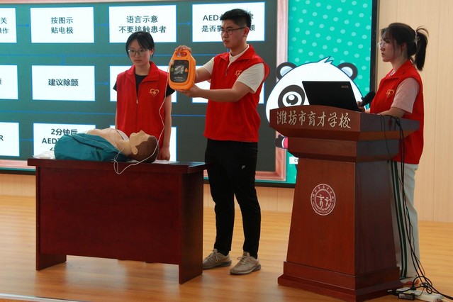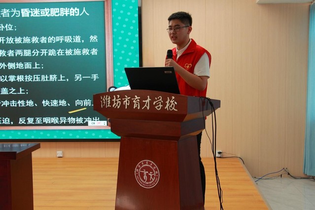 为增强中小学生急救意识与自救互救能力,加强生命教育,5月16日,bat365中文官方网站南丁格尔志愿服务队走进潍坊市育才学校,开展了以 “急救课堂传温暖,志愿服务筑平安” 为主题的急救知识普及活动。