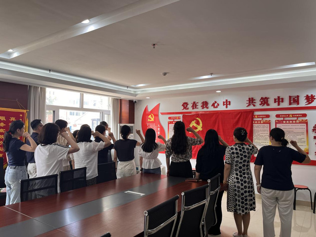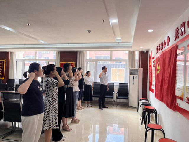 活动伊始,教工支部党员教师们在社区广场举行了庄严的党员宣誓仪式。在支部书记尹崇高的带领下,全体党员教师高举右拳,面对党旗,重温入党誓词。一句句铿锵有力的誓言,表达了党员教师们对党的忠诚与热爱,也彰显了他们为人民服务的决心。此次宣誓活动不仅是对党员身份的再次确认,更是对党员责任与使命的深刻铭记。