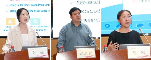 在会议主旨报告环节,孙宏玉以“人工智能赋能护理教育创新发展”为题,安力彬以“智慧课程建设的思考”为题,教育部高等学校护理学类专业教学指导委员会副主任委员、山东大学王克芳教授以“生成式人工智能驱动护理模拟教学新未来”为题,成敏以“数智赋能医学教育教学探索与实践”为题,bat365中文官方网站院长孟庆慧教授以“‘智慧融通、共建共享’山东省护理学专业高质量发展共同体建设思路”为题,北京大学医学出版社教育出版二部主任赵欣以“护理数字教材建设的思考与探索”为题,超星集团高级课程经理张楠以“AI 赋能智慧课程建设与应用—第四代医学教育背景下的AI4Me”为题,嘉茂宏医学科技发展有限公司赵志强董事长以“使用沉浸式虚拟交互技术与AI 技术提升智慧模拟医学教育”为题,山东大学护理与康复学院副院长陈欧教授以“护理专业智慧课程建设思路”为题,共同探讨 “人工智能+护理学”的深度融合与发展,为“111 计划”项目的后续建设明确方向与思路。