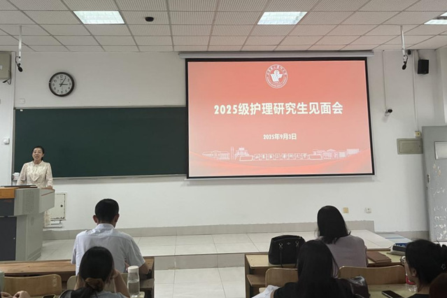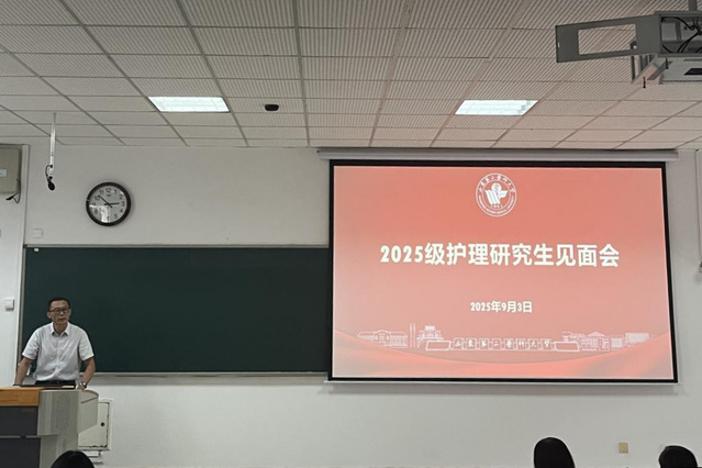马健平首先向2025级新生致以热烈欢迎,并讲授“安全教育第一课”,从思想、生活、网络等多个维度深入阐述了校园安全的重要性。孟庆慧围绕学院发展、学科建设、人才培养与护理学使命开展讲话,激励新生坚定专业信念、勇担时代责任。尹崇高作为导师代表,分享科研心得与学习经验,引导同学们科学规划学术路径。季丽丽则结合研究生培养的关键节点,从综合素质提升与职业发展角度为学生梳理方向。2024级研究生代表商晓铭结合自身经历,真诚分享学习体会与心路历程。最后,刘俊介绍了本学期党建活动安排。